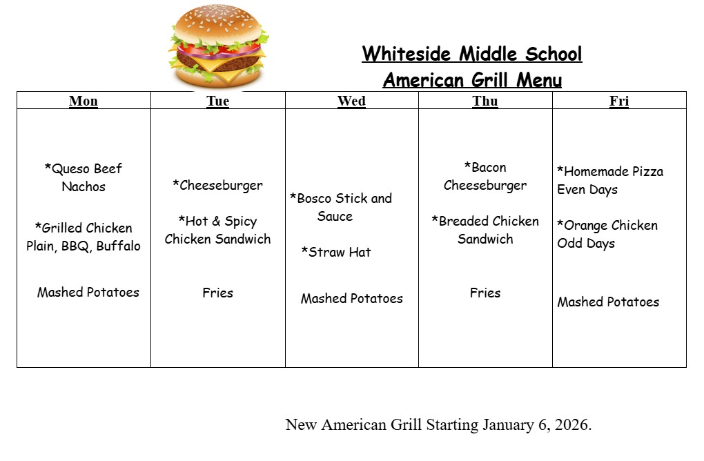 The menu for Friday (1/30) will be the same as previously planned: