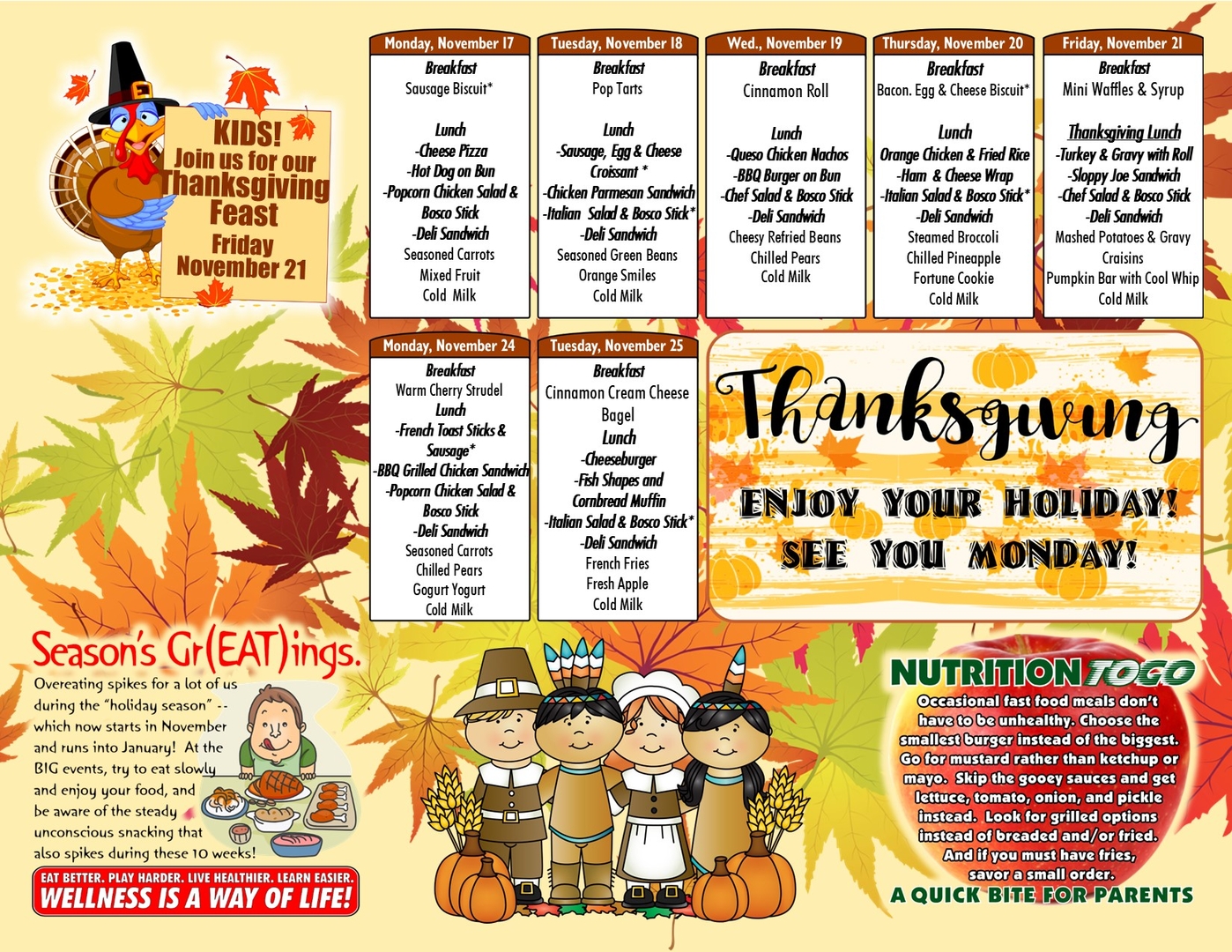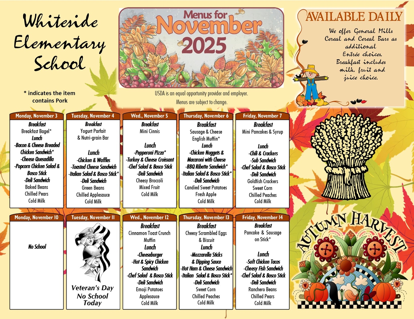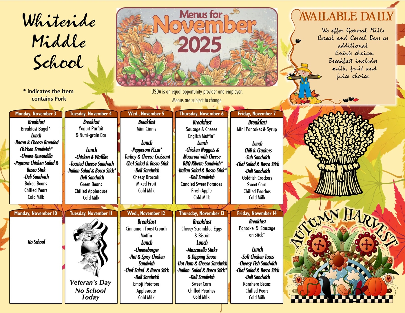 *Note* Due to the Veterans Day festivities on Friday, November 7, there will be NO American Grill served at the Middle School. The regular menu will be served as stated below.
